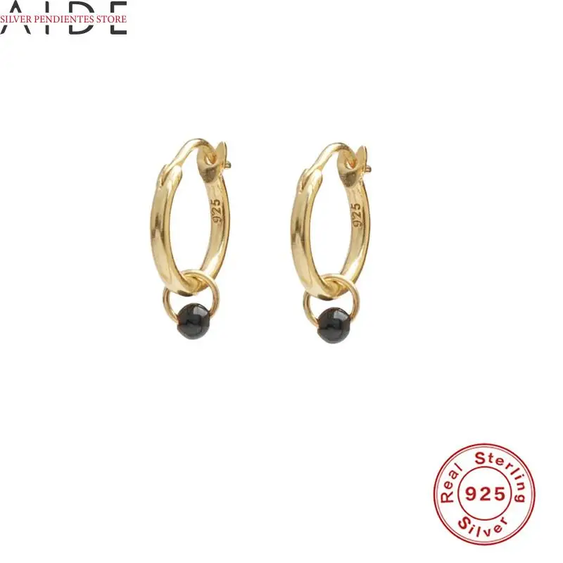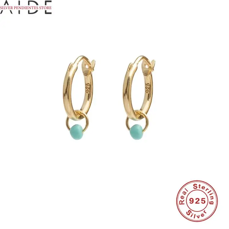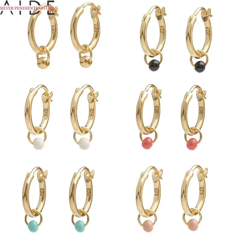 AIDE простые круглые золотые серьги для женщин 925 стерлингового серебра серьги-кольцо черный, белый, розовый цвет бирюзовый бисера Серьги Brincos, можно носить