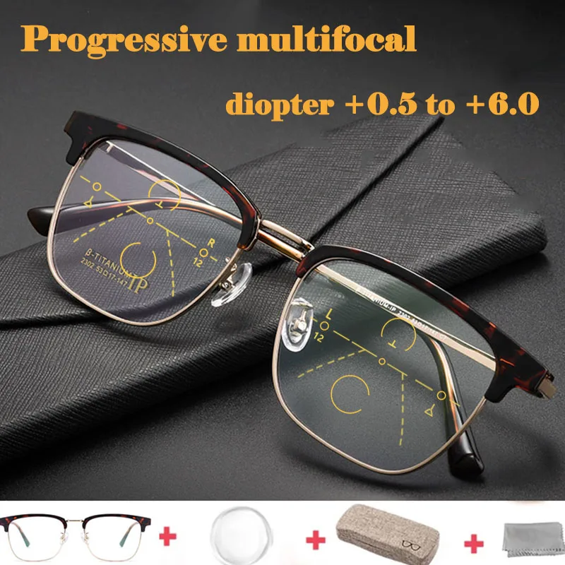 Очки для чтения с мультифокальными линзами мужские, ретро-оправа из титана, пресбиопические квадратные, с диоптриями от + 0,5 до + 6,0