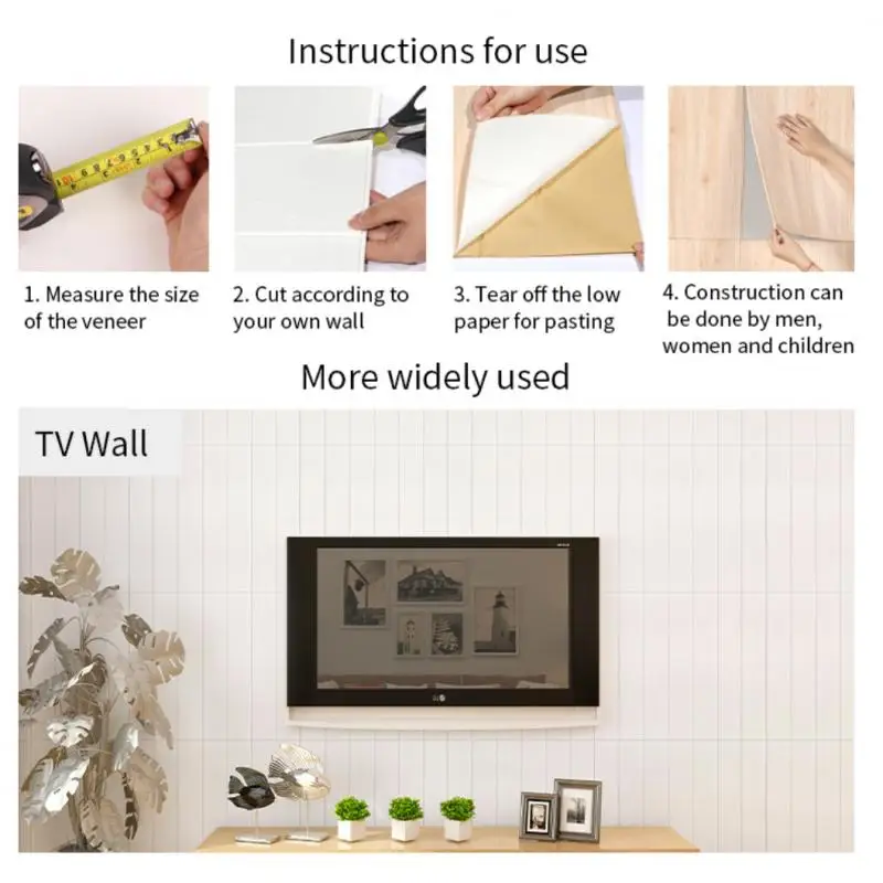D. Самоклеющиеся пилки и стеновые панели, без затирки, без клея, без специальных инструментов и беспорядка.
