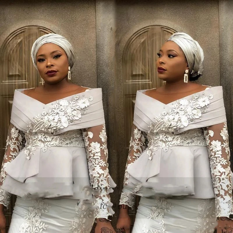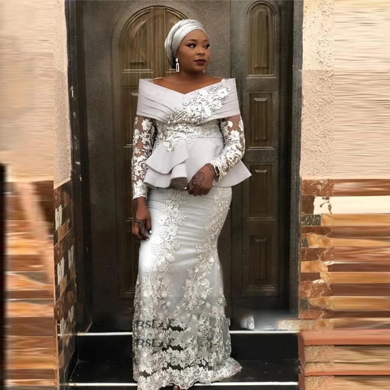 Aso Ebi Свадебные платья с оборками Русалка 2022 блестящие с длинны...