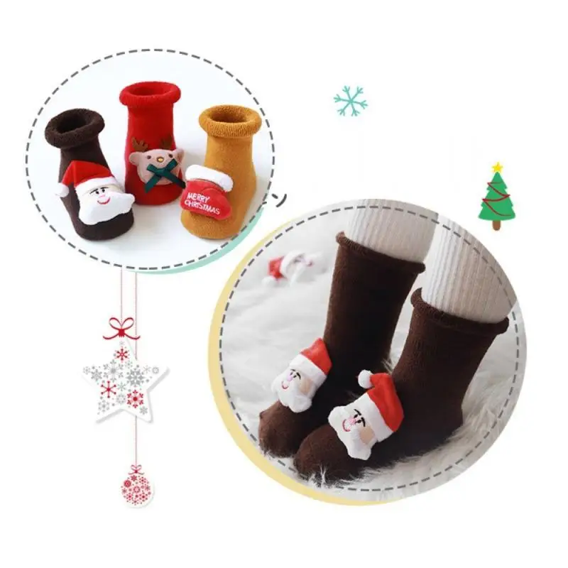 Новогодние рождественские носки для малышей Детские носки милые хло...