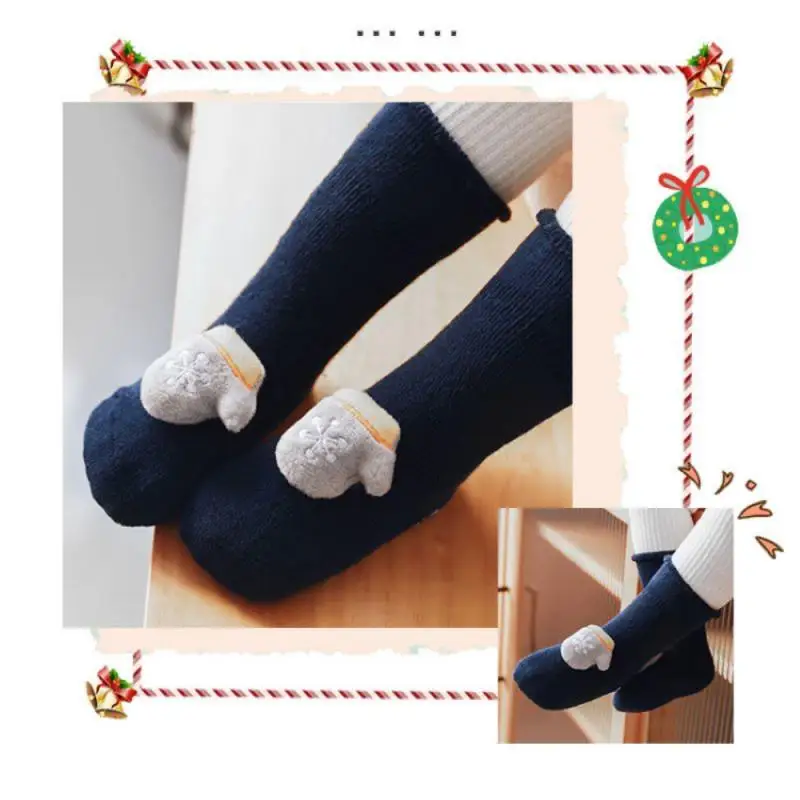 Рождественские утепленные хлопковые носки с принтом для мальчиков и девочек 0-3 лет, зимние теплые пушистые флисовые Носки с подкладкой, аксессуары на Новый год 2022