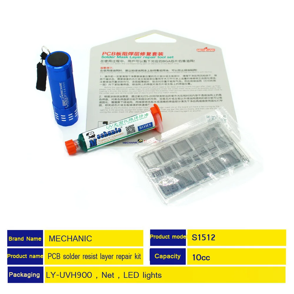 Механическая печатная плата S1512 для ремонта печатных плат, специальный УФ-светильник, закругленная паяльная маска, набор ремонтных инструментов, защитная паяльная паста, комплект