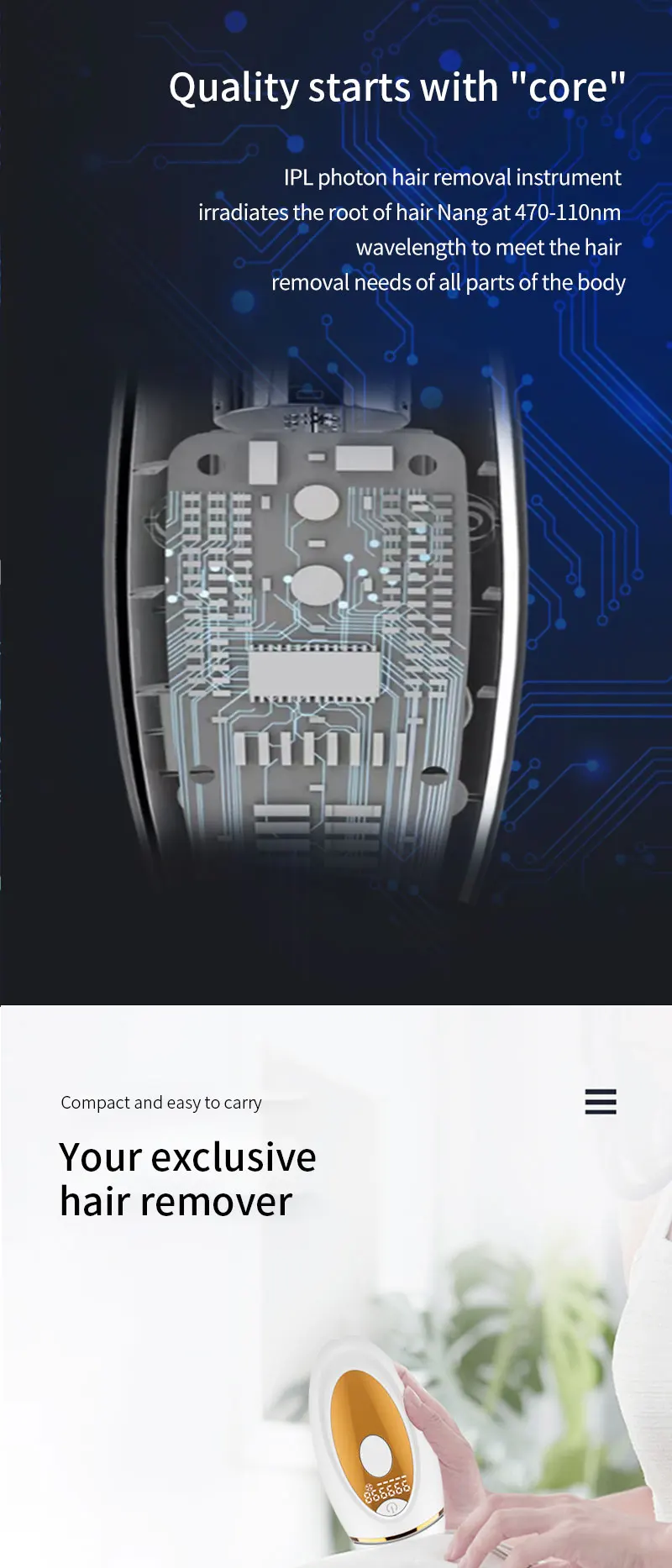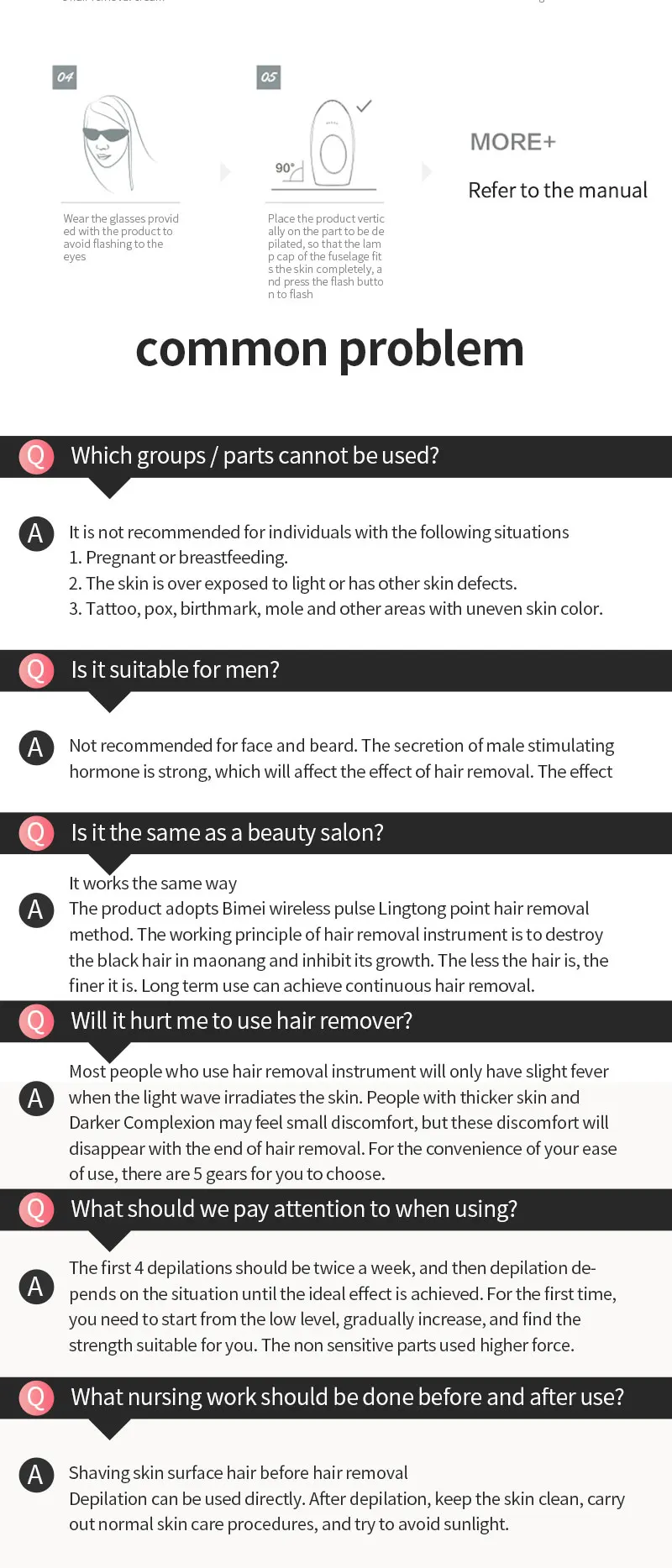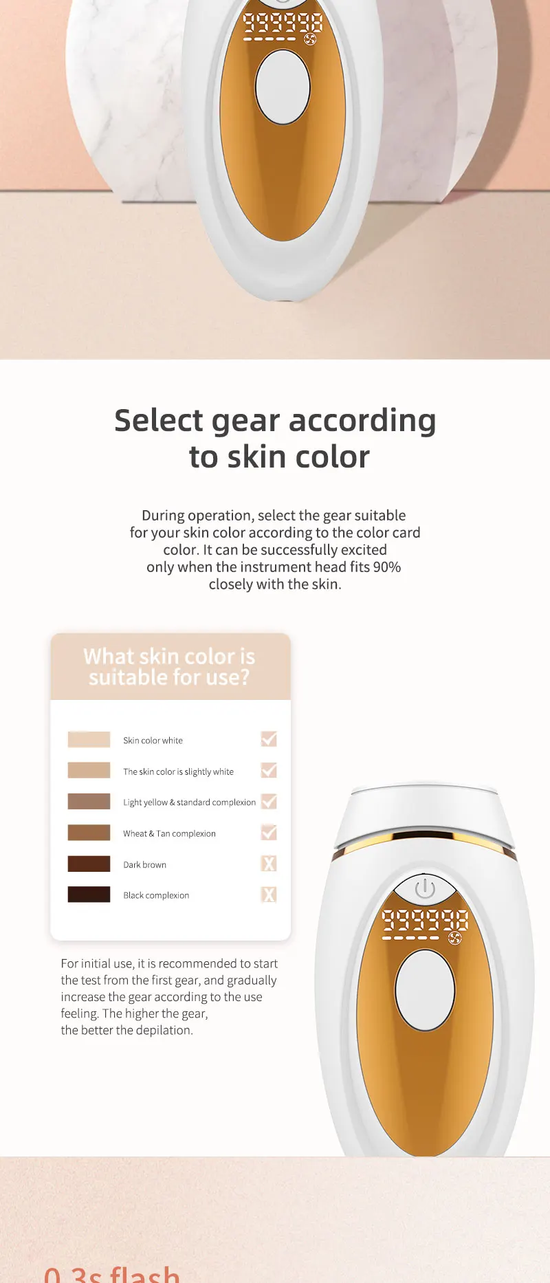 Технические параметры продукта:Светильник: ксеноновая кварцевая трубкаСветильник источник: импульсно-светильникЧастота энергии: 2,3-4.3J/cm⊃ 2;Размер Фокуса: 30 мм * 10 ммДлина волны: 530нм ~ 1100нмСветящийся светильник: 999000 разСпецификация адаптера: AC100 ~ 240V @ DC12V 3AВес: 168 гРазмер: 152*76*45 ммДиапазон рабочих температур: 5 ℃ ~ 30 ℃Диапазон рабочей влажности: относительная влажность 30% ~ 60%Особенности:1,990000 пузырьков вспышки используют лампу, Двухслойное покрытие, безопасно и эффективно.2. Ручной/автоматический двойной режим, мягкое облучение с пятью передачами энергии.3. Съемный держатель лампы с двойной фильтрацией, корпус используется для неограниченного времени.Введение функции продукта⑤ Омоложение кожи• ДепиляцияОбласть применения: волосы на губах, волосы на подмышках, волосы на конечностях, линии на лбу и другие волосы, которые влияют на красоту; Безболезненное удаление волос для людей с черными волосами и темными волосами, но не для белых, белые и золотистые волосы.
