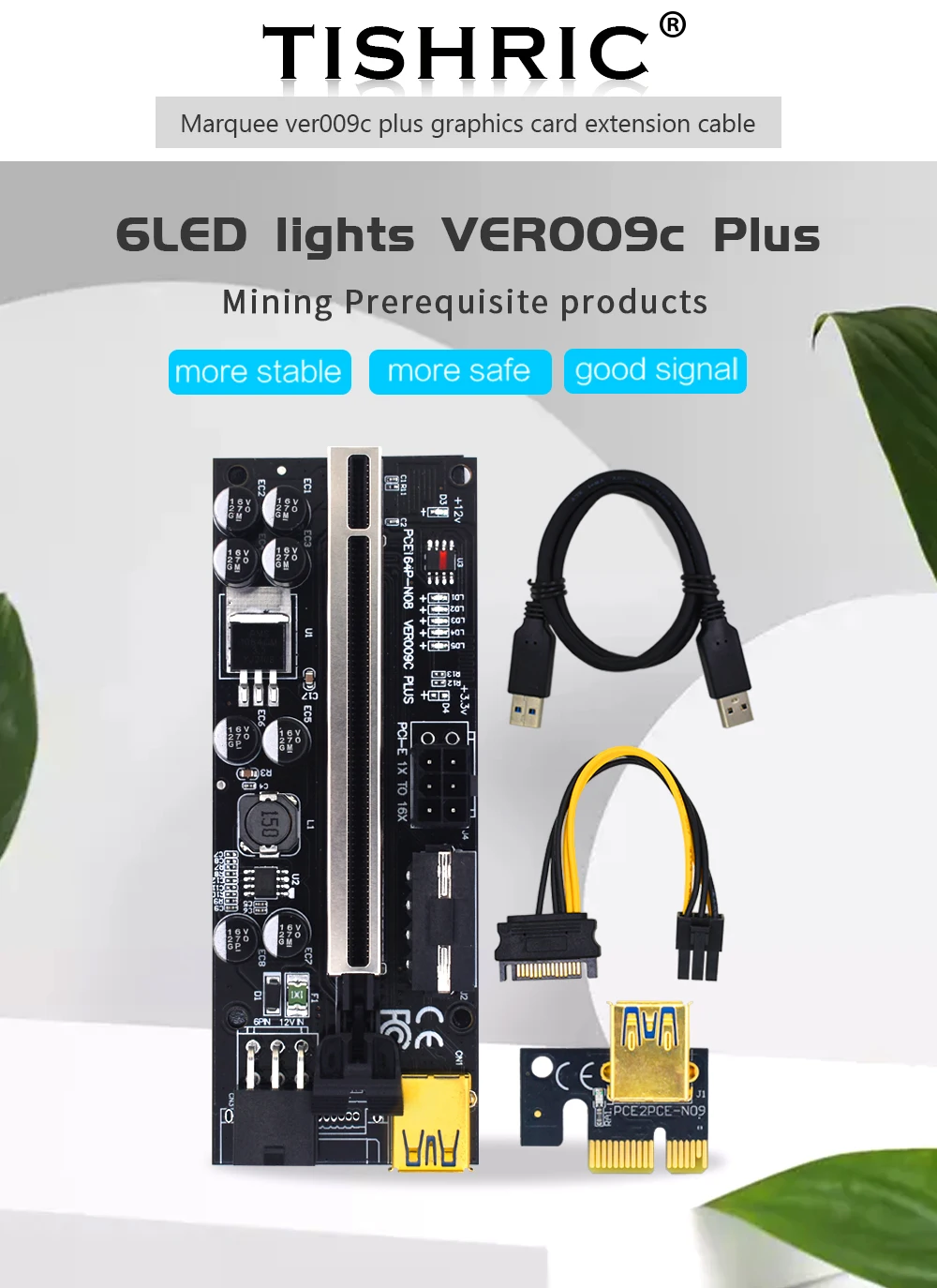 10 светодиодный т. TISHRIC 6 LED PCI-E Riser 009S PLUS VER009 USB3....