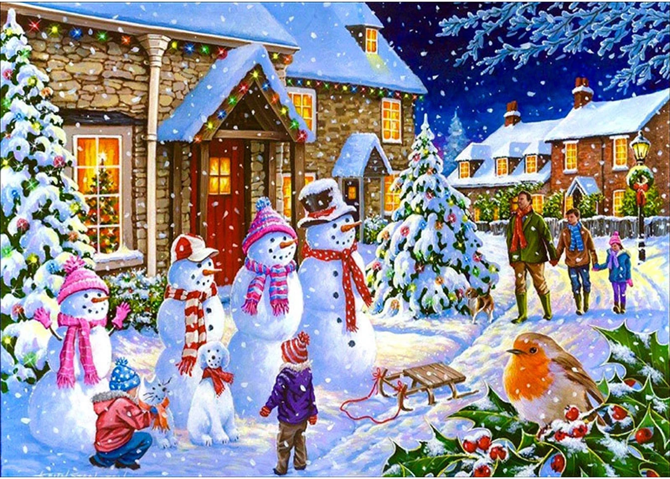 5D алмазная живопись, Полный алмаз, снеговик, круглая Алмазная моза...