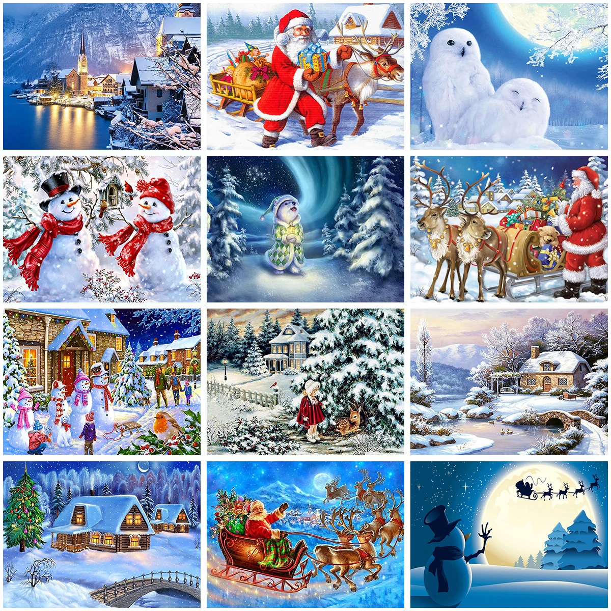 Алмазная 5D картина сделай сам, Рождественский пейзаж, полная вышив...