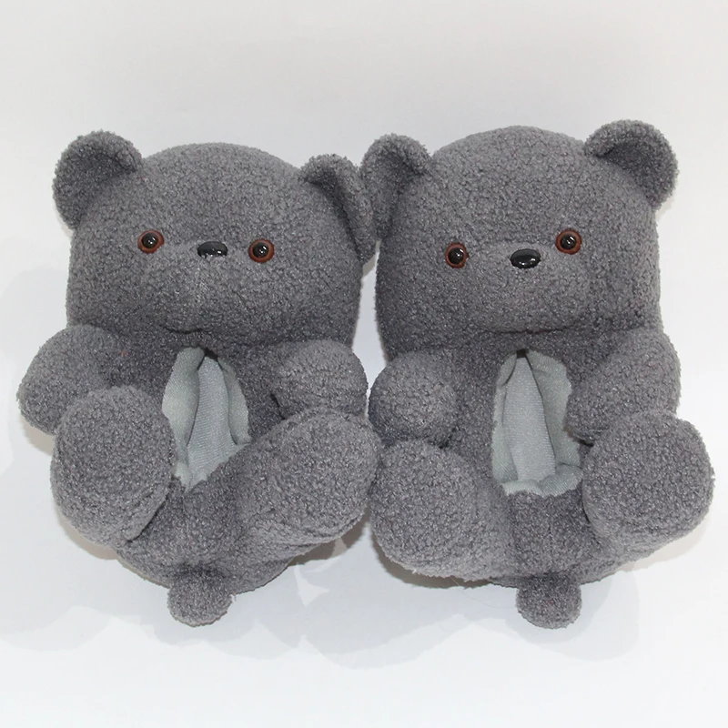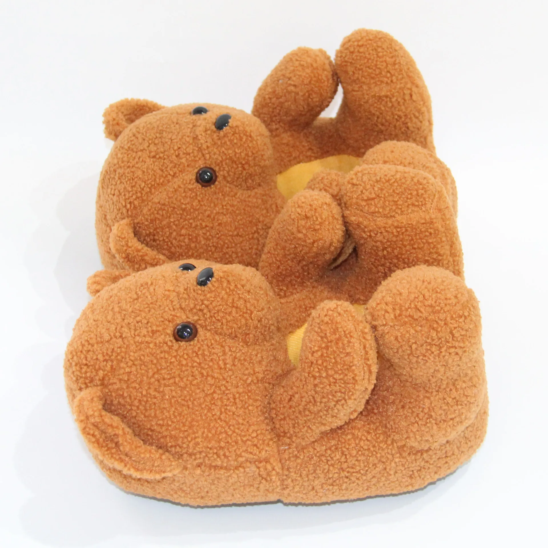Зимние Детские теплые плюшевые тапочки с милым плюшевым мишкой; Детские креативные милые домашние тапочки с пушистым медведем из хлопка; Шлепанцы для маленьких девочек