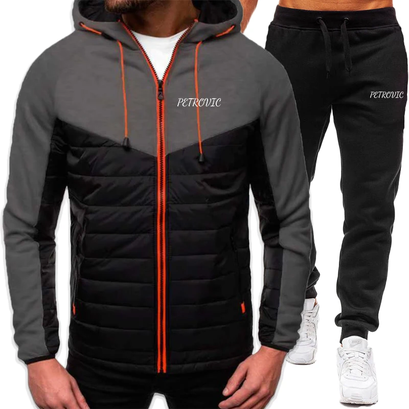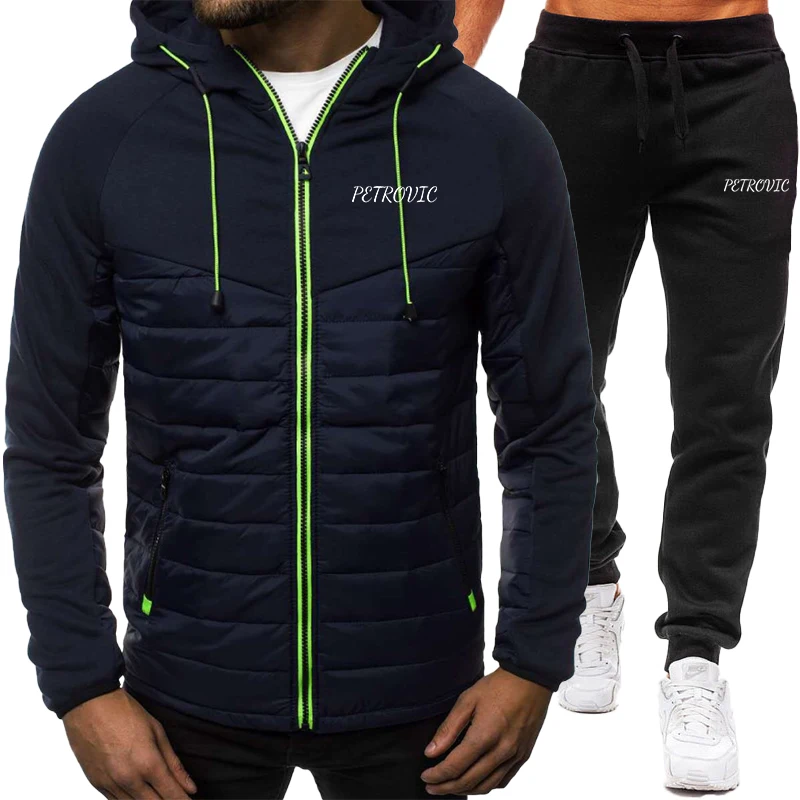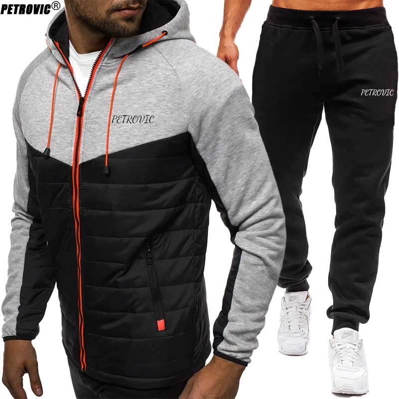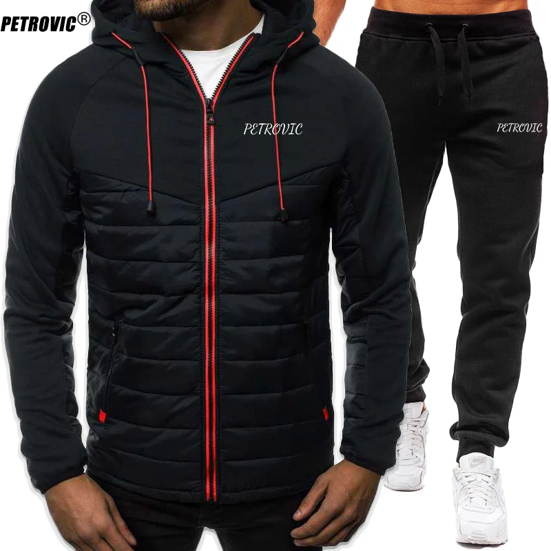Осенне-зимние мужские спортивные костюмы PETROVIC, куртка с капюшоном и штаны, плотные флисовые теплые мужские комплекты