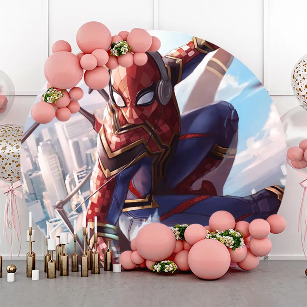 Фоны для вечеринки на заказ фон Marvel супергерой круглая форма Человек-Паук День Рождения фотозона детские украшения
