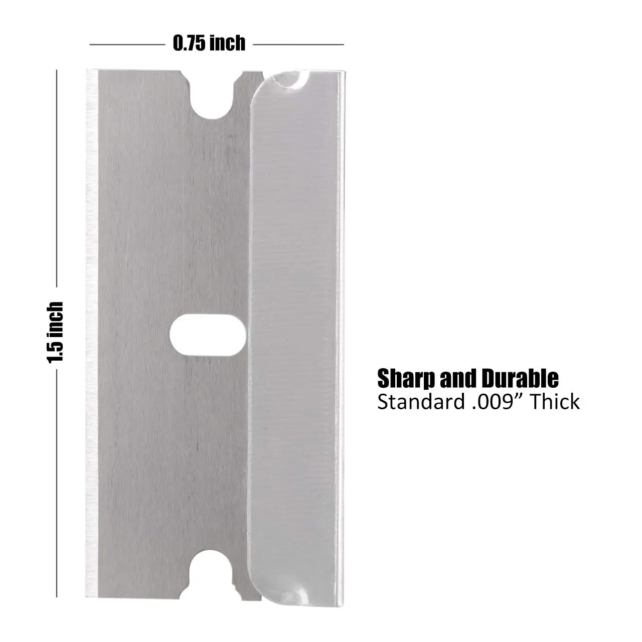 ПараметрыПродукт: 1,5 "лезвие из углеродистой стали для скребковРазмеры: 4 см (L) x 2 см (Ш)/1,5 дюйма x 0,75 дюйма100 шт./кор.Посылка включает в себя:100/200 шт Углерода Сталь лезвия