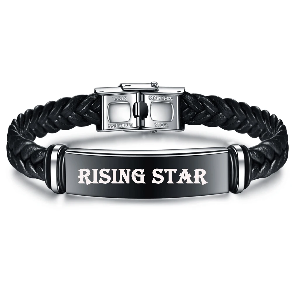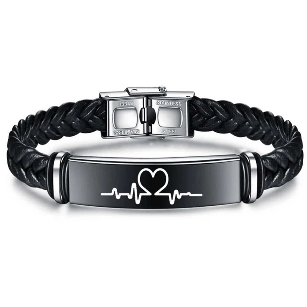 YWSHK, персонализированный гравировочный именной логотип, черный плетеный кожаный браслет с датой, браслет из нержавеющей стали для мужчин и женщин, ювелирные изделия, подарок