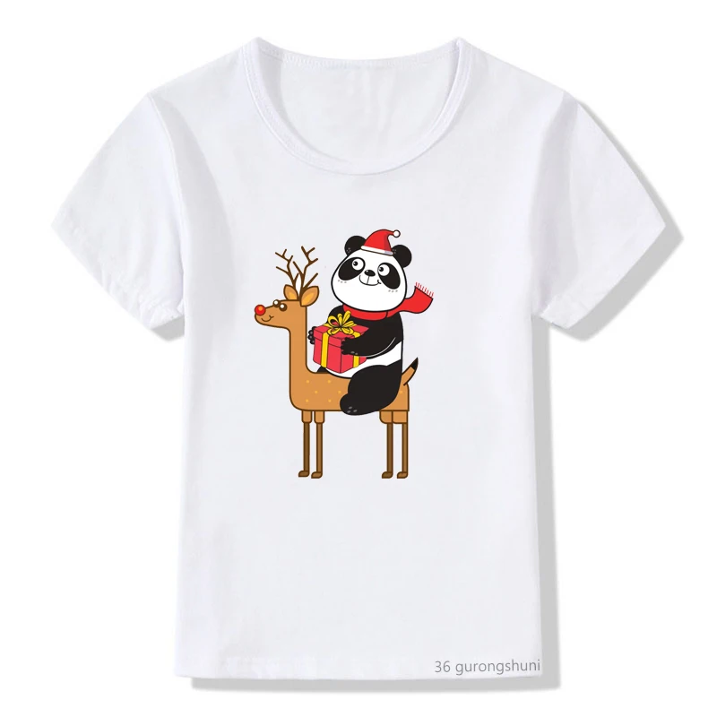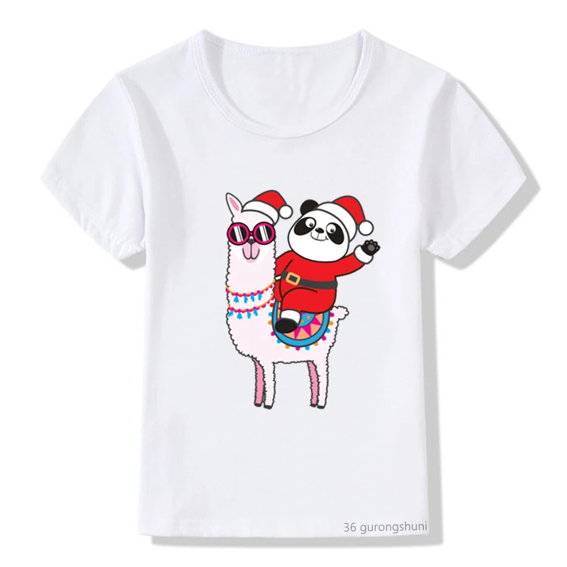 Новые детские футболки, милые рождественские футболки для мальчиков с мультяшным принтом верблюда и панды, трендовые футболки для девочек, детские рождественские футболки