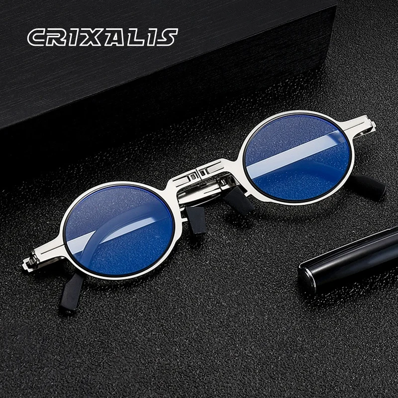 Круглые металлические складные очки для чтения CRIXALIS, женские квадратные компьютерные очки для мужчин, оправа для рецептурных очков, женские UV400