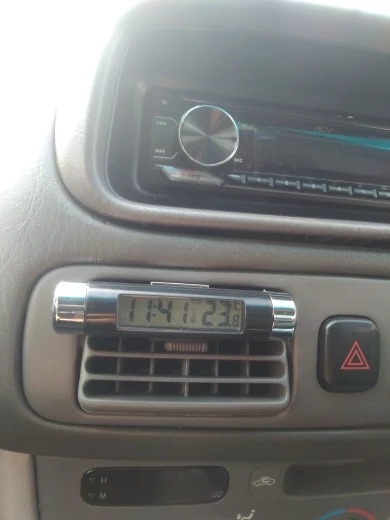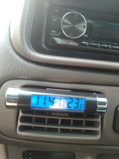 Характеристики: термометр для часов транспортного средства. Часы, функция отображения температуры, задний светильник: если задний светильник имеет кнопку, он будет светильник около 5 секунд после нажатия, оснащен зажимом, который может зажимать выход кондиционера/солнцезащитный козырек для легкой установки.