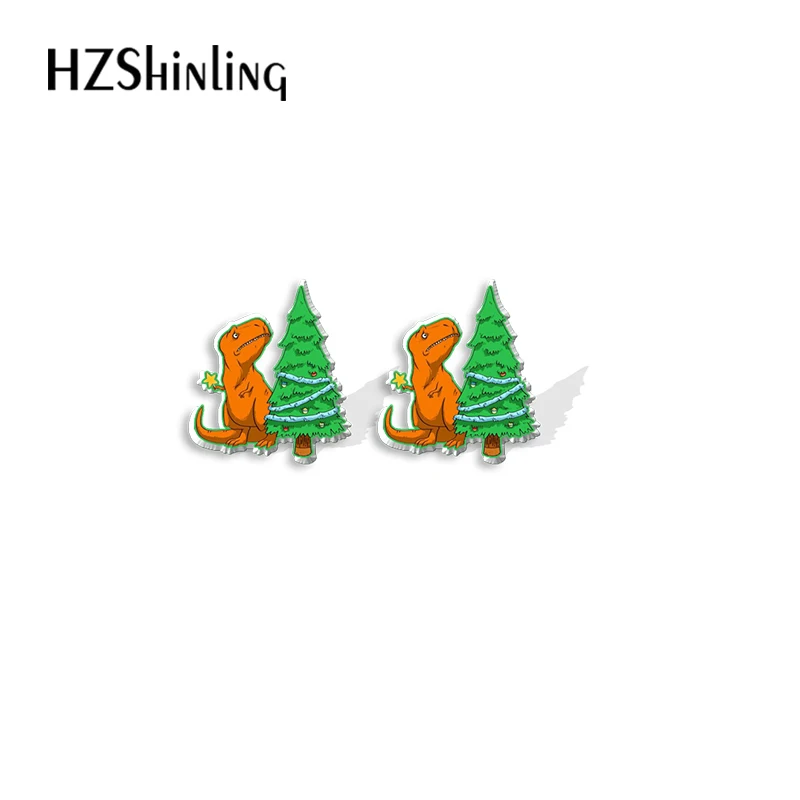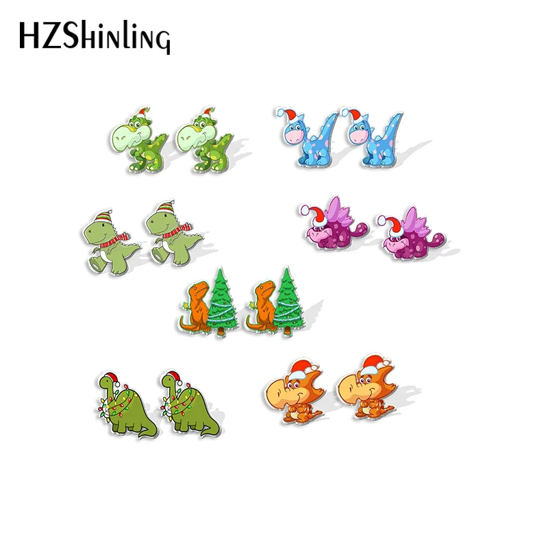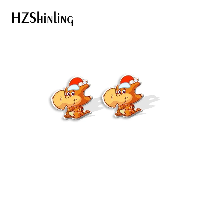 Kwaii мультфильм Рождество динозавр Декор Узор Акриловые серьги-гвоздики Смола эпоксидные уши ювелирные изделия для девочек