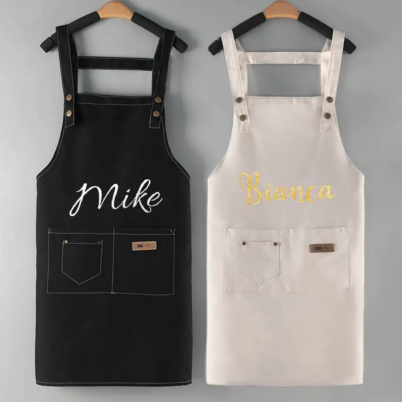 Персонализированный хлопковый фартук с возможностью нанесения логотипа, кухонный дышащий маслостойкий фартук для ресторана и официанта, всесезонный фартук без рукавов