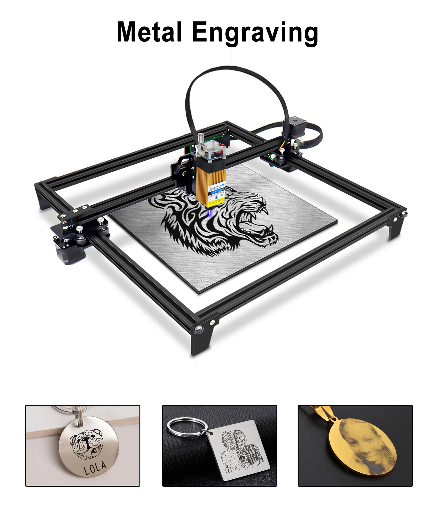 Конструкция металлической рамы с акриловыми стопами делает машину более прочной, уменьшает вибрацию во время работы и повышает точность гравировки. Вся конструкция предназначена для быстрой сборки (обычно в течение 10-20 минут).