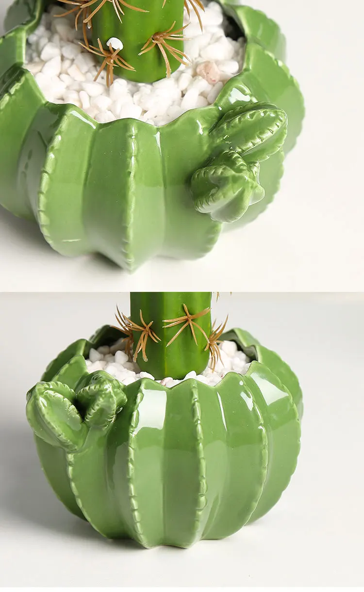 Керамический цветочный горшок в форме кактуса, дренажное отверстие,...