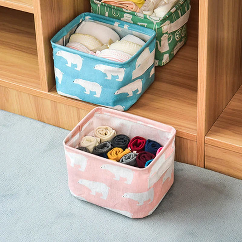 Льняная настольная коробка для хранения, водонепроницаемый органайзер для хранения игрушек, детской косметики, нижнего белья, офисные канцелярские принадлежности