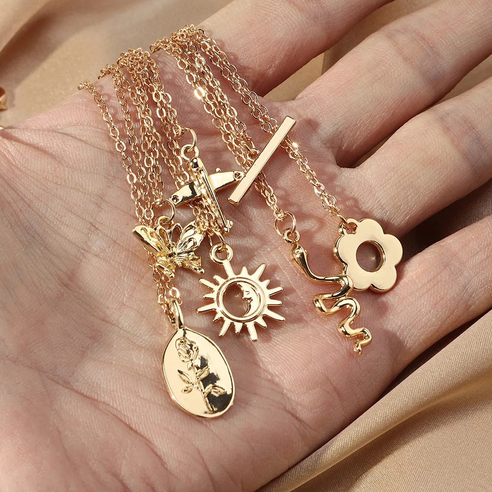 Корейский Серебряный позолоченный блестящий кулон в виде бабочки, ожерелье для женщин, модное богемное многослойное хрустальное ожерелье в виде животного, цепочка в подарок