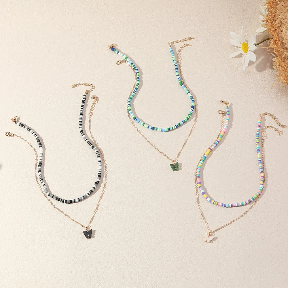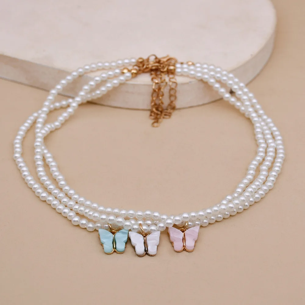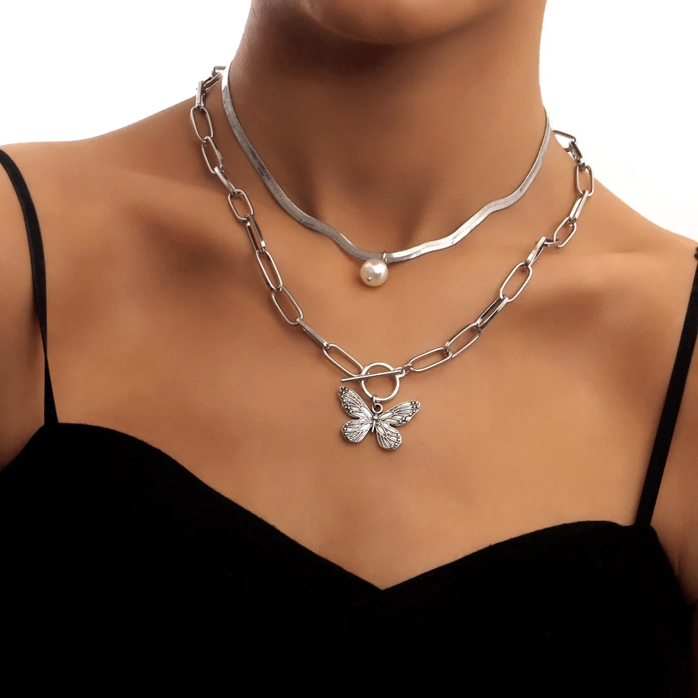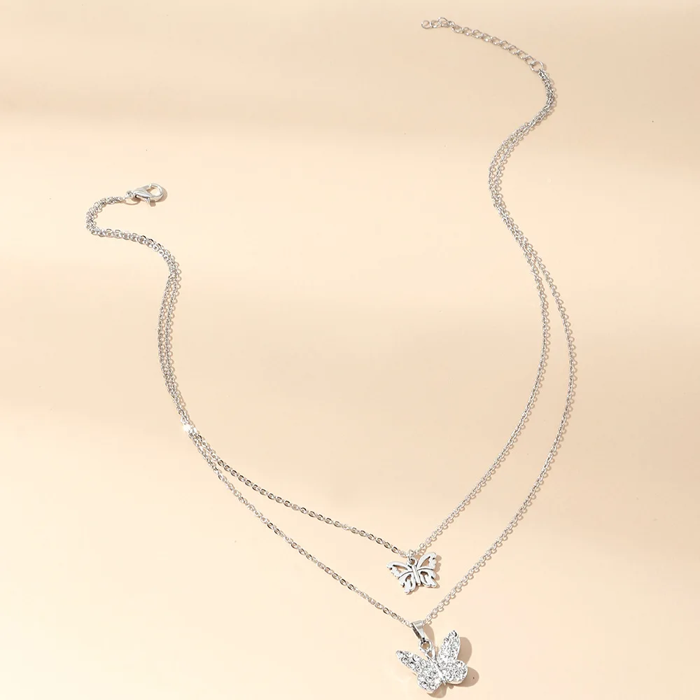 Женское ожерелье с подвеской-бабочкой, многослойное ожерелье с кристаллами
