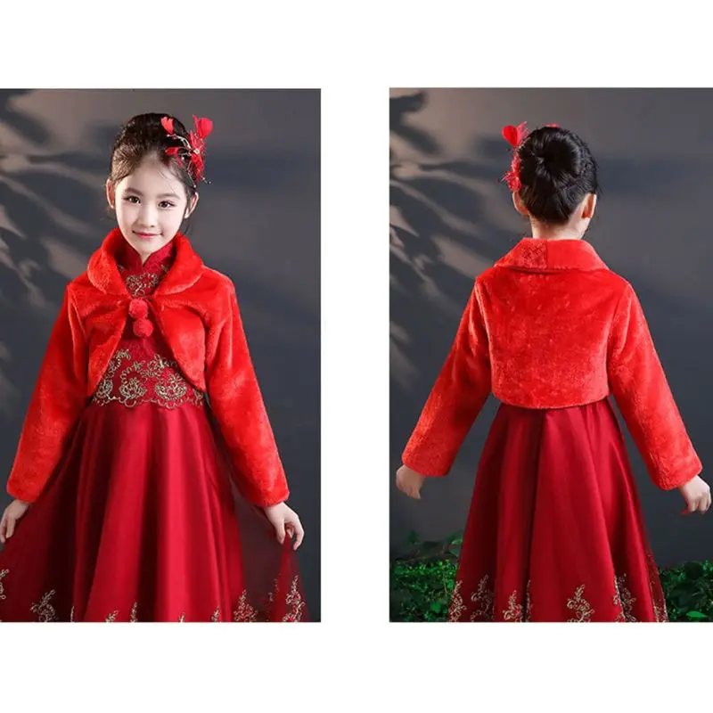 Детская утепленная плюшевая шаль принцессы, шаль с цветочным рисунком для девочек, с длинным рукавом, болеро, накидка, накидка для свадьбы, дня рождения, вечеринки, куртка с помпоном и галстуком