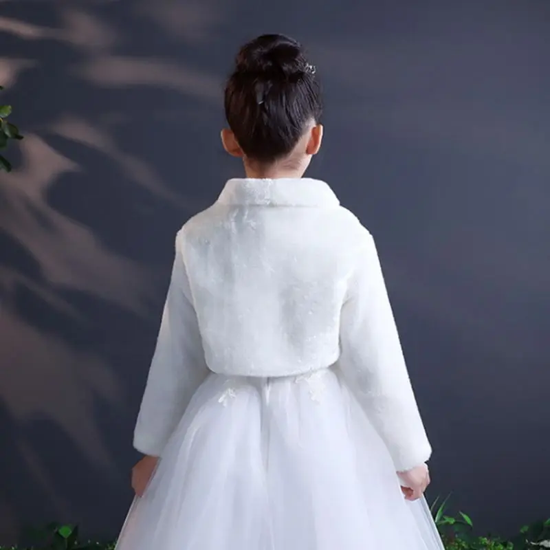 Детское утепленное плюшевое Болеро принцессы с длинными рукавами и цветочным узором для девочек, накидка на свадьбу, день рождения, вечеринку, куртка с помпоном
