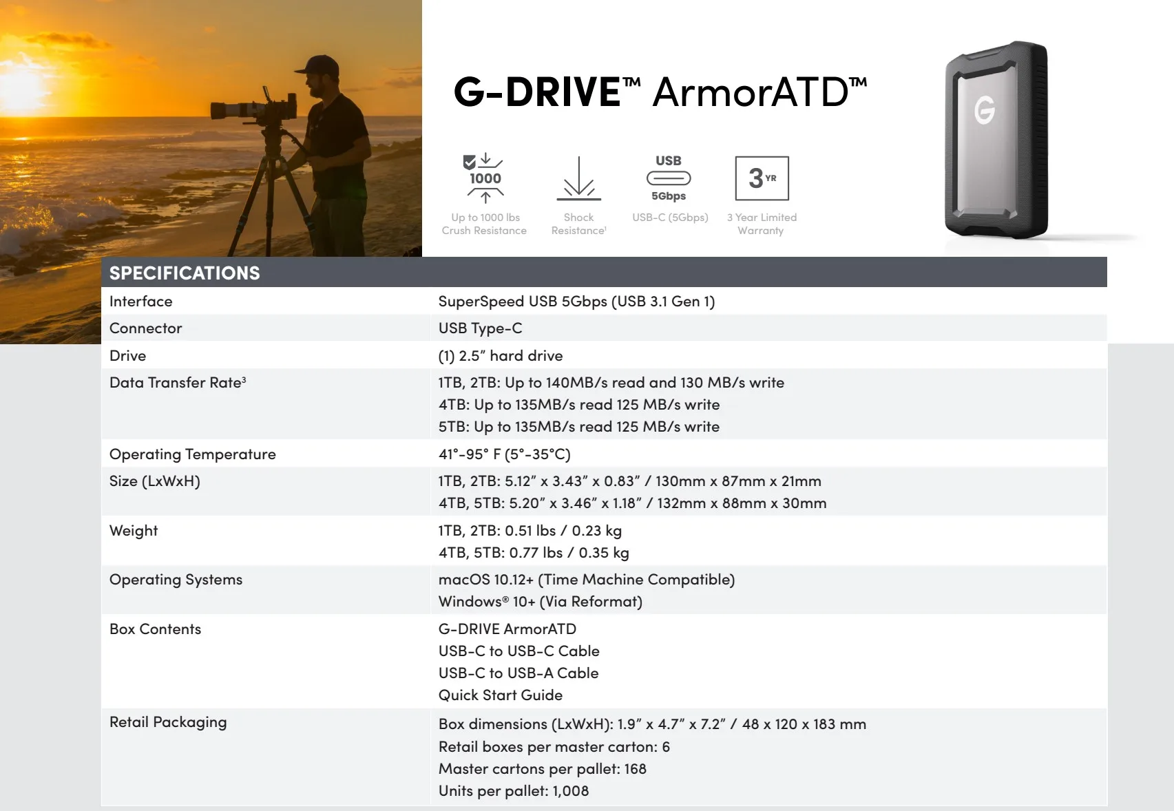 Портативный твердотельный накопитель SanDisk G-DRIVE ArmorATD, 2,5 дюйма, 5 ТБ, 4 ТБ, USB, прочный портативный внешний жесткий диск, HDD
