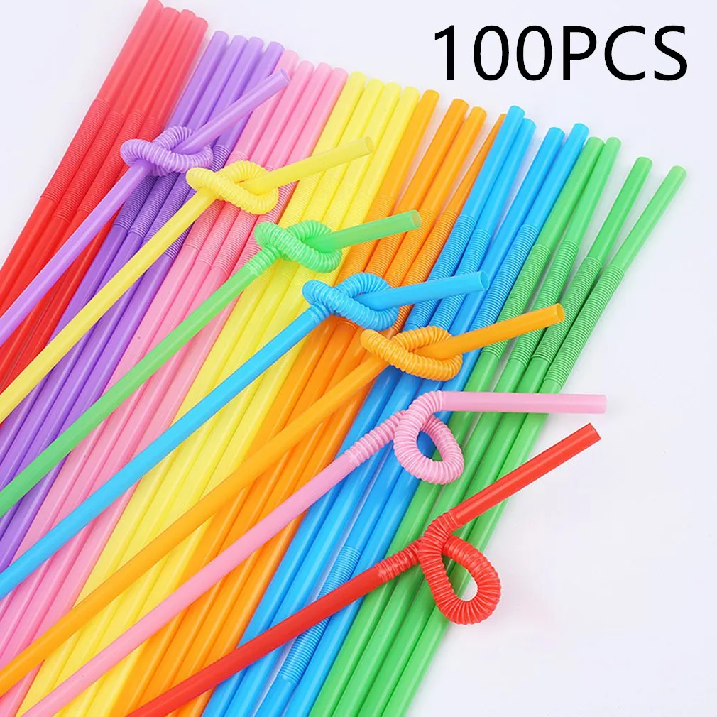 Изогнутые разноцветные пластиковые трубочки для напитков, 100 шт., 21 см