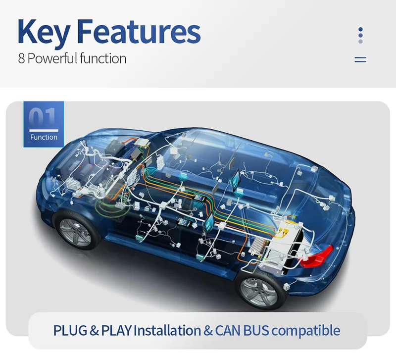 1. Технология \ "подключи и используй \", без повреждения оригинальной схемы автомобиля, Совместимость с CAN-шиной, не нужно резать провода или требуется подключить только несколько проводов.