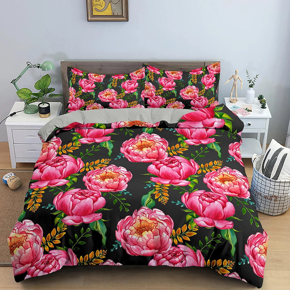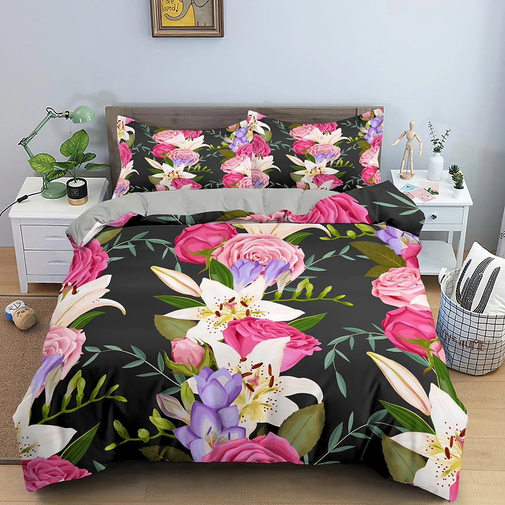Juego de ropa de cama 3D, funda nórdica con estampado de flores, juego de funda de cama de tela de microfibra para niña, funda de edredón de 2/3 piezas, juego de funda de edredón de lujo