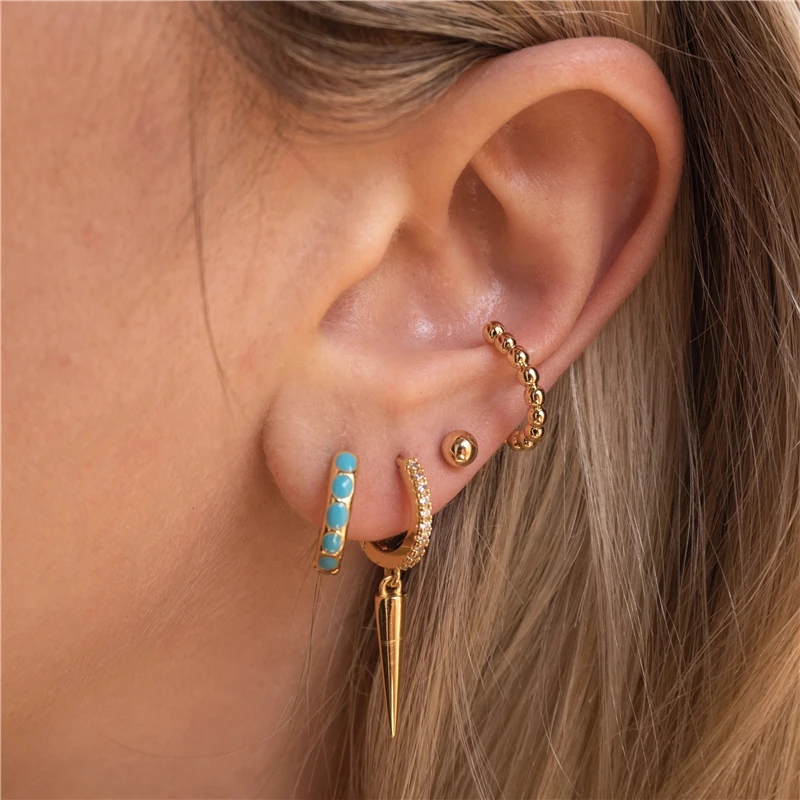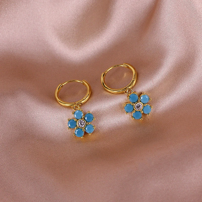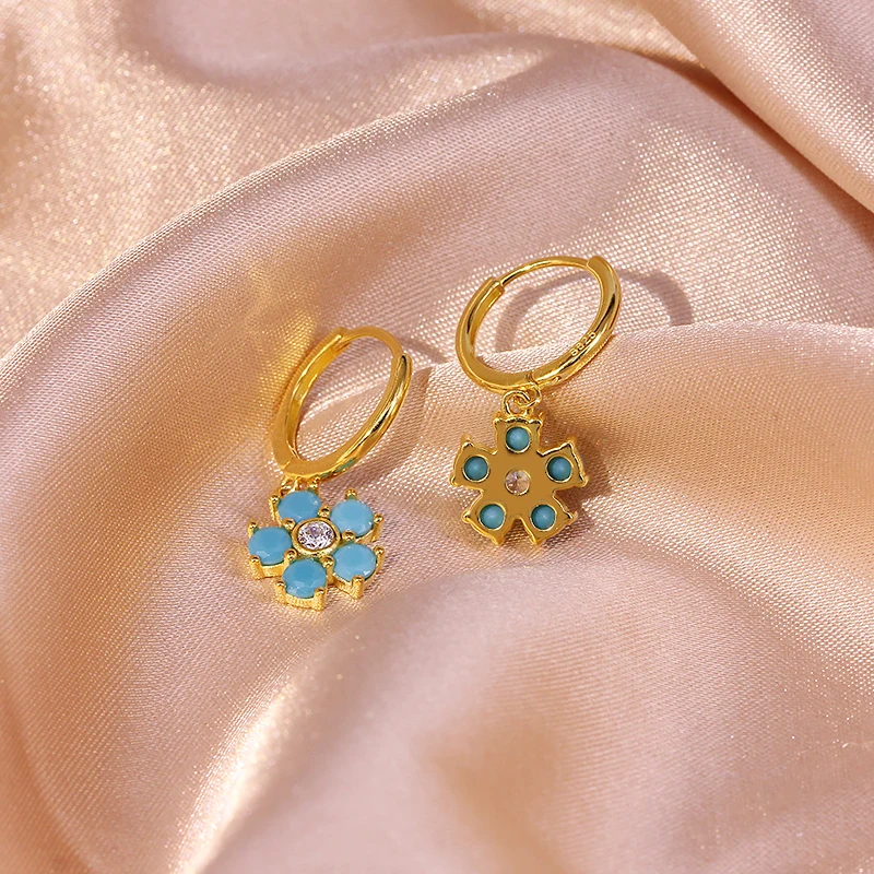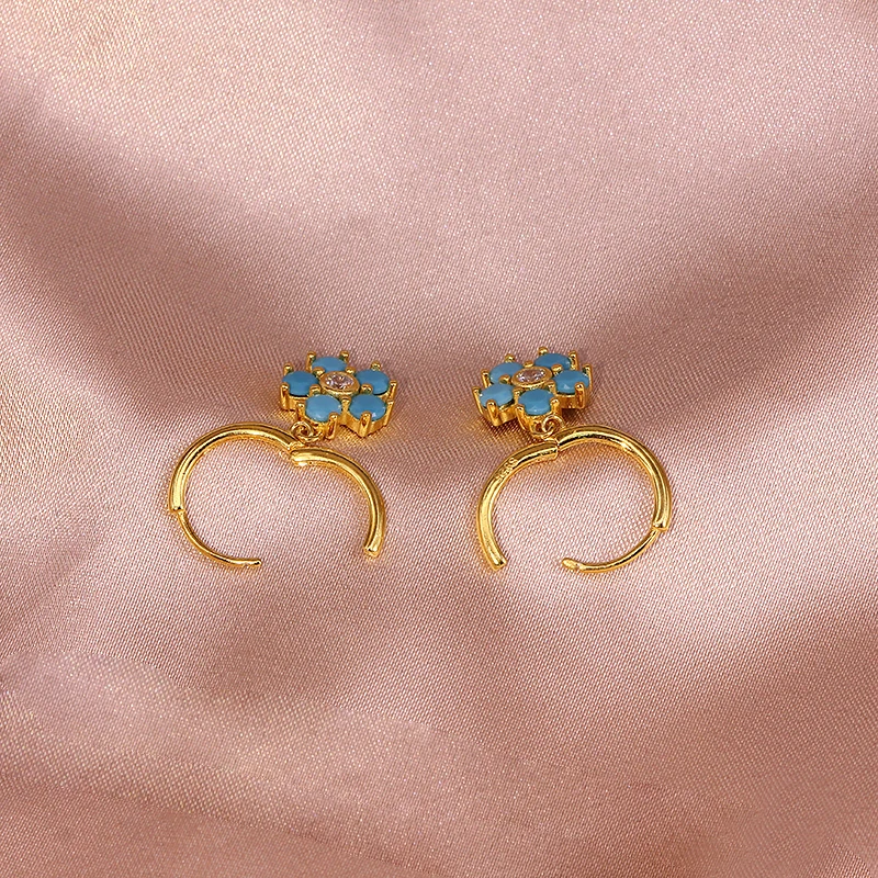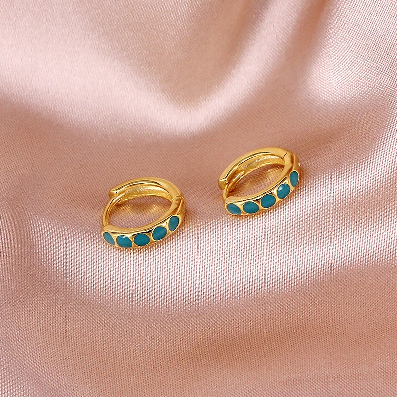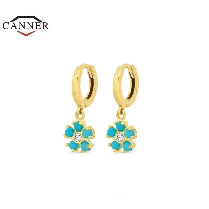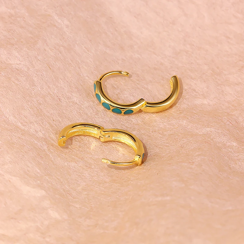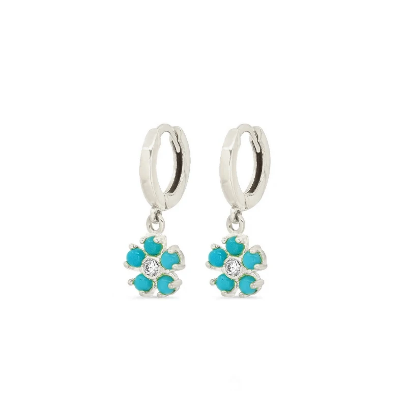 Женские серьги-подвески Huggie из серебра 925 пробы с бирюзовым кулоном