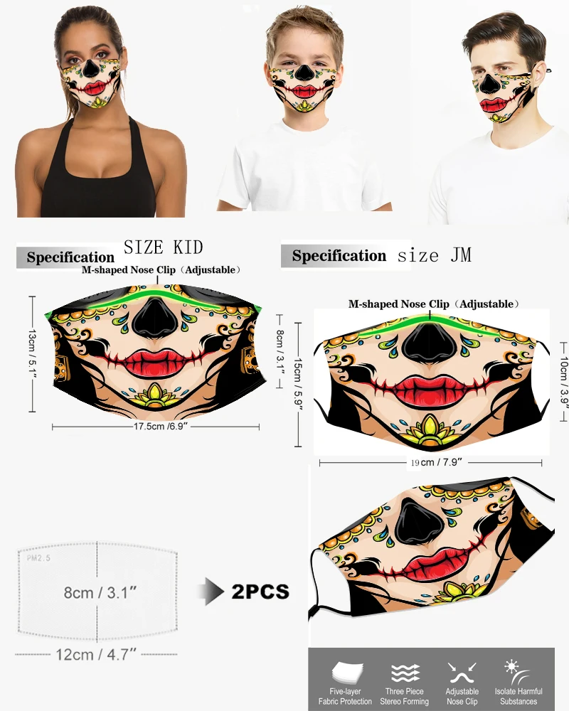 Модные маски для рта в виде черепа, Женская дышащая маска для защит...