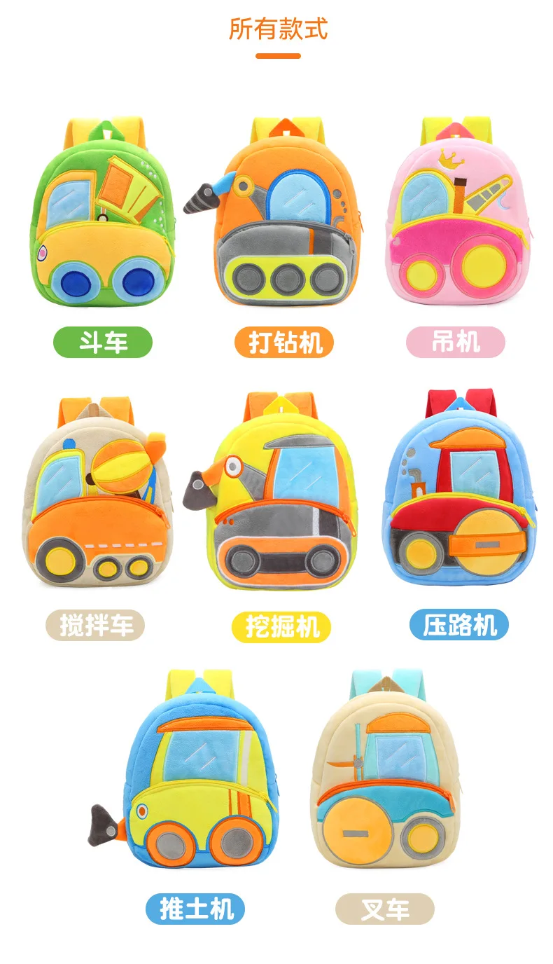 Детские плюшевые рюкзаки с мультипликационным принтом, мини школьный рюкзак для детского сада, плюшевый рюкзак для экскаватора, детские школьные сумки, рюкзак для девочек и мальчиков