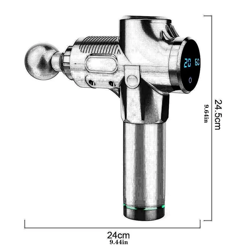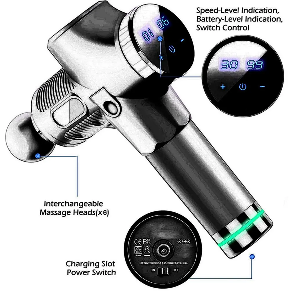 Электрический модный пистолет с сенсорным экраном + шесть массажных головок с глубокими тканевыми мышечными массажными пистолетами для тела, плеч, шеи, спины, массажер для облегчения боли