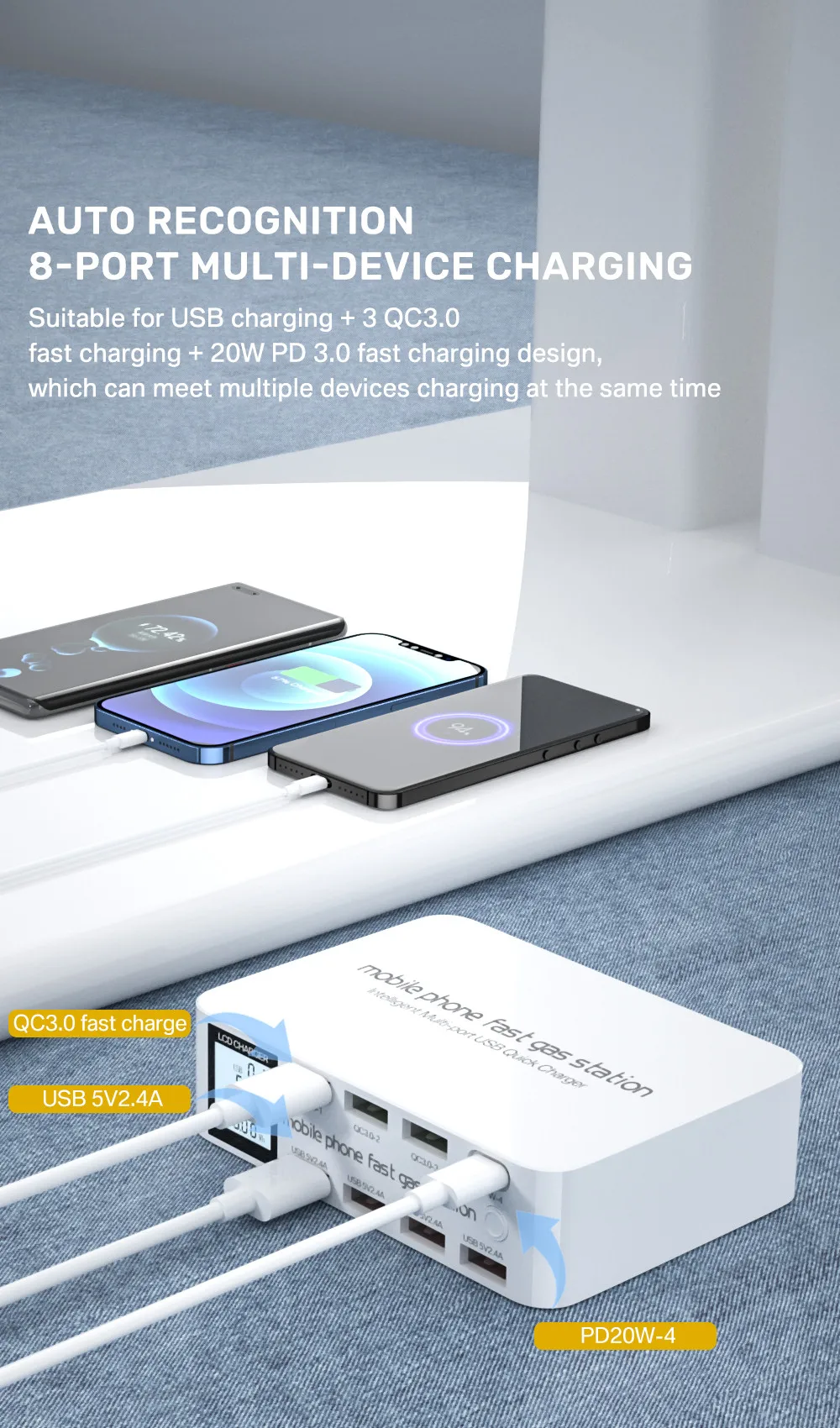 Зарядное устройство с 8 USB-портами и ЖК-дисплеем, быстрая зарядка 3,0, Тип C PD, 100 Вт, зарядное устройство для телефона для iPhone, Huawei, Samsung, Xiaomi