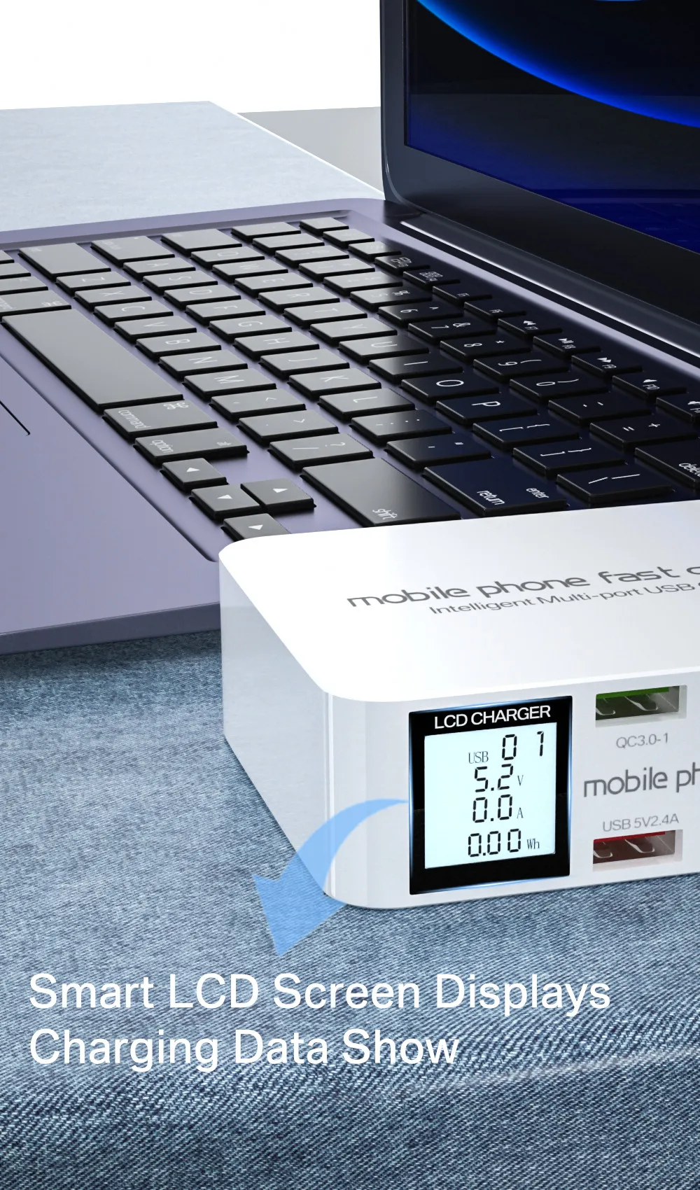 1. С 4 портами USB A, 3 портами QC3.0 и 1 портом PD3.02. Совместимость со всеми смартфонами, такими как iphone, Samsung, Xiaomi, Huawei, LG, Lenovo, HTC, Sony, Google и tablet PC, камера, MP3, MP4 плеер, PSP3. Одновременно заряжайте 8 устройств.4. Автоматическое соответствие тока, больше защиты5. С интеллектуальным ЖК-цифровым дисплеем