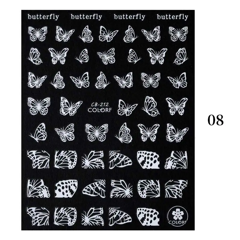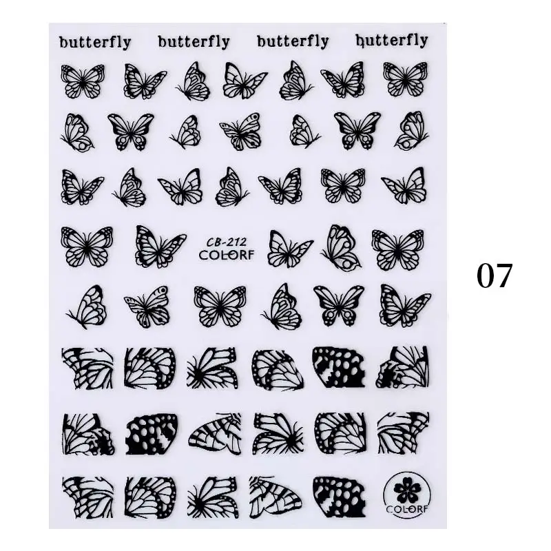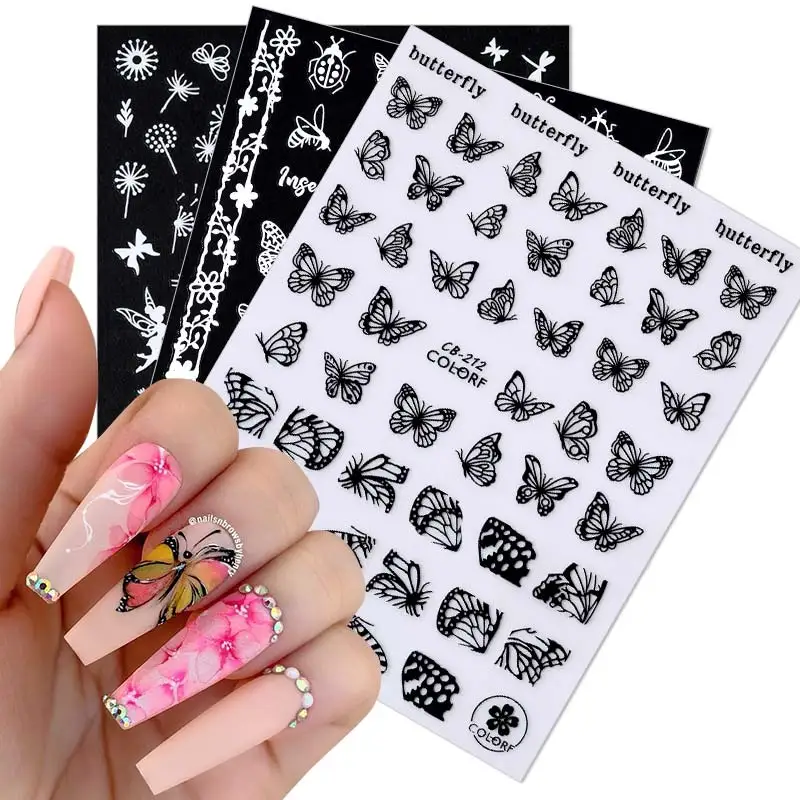 Черная, белая бабочка, божья коровка, 3D наклейки для ногтей, цвето...