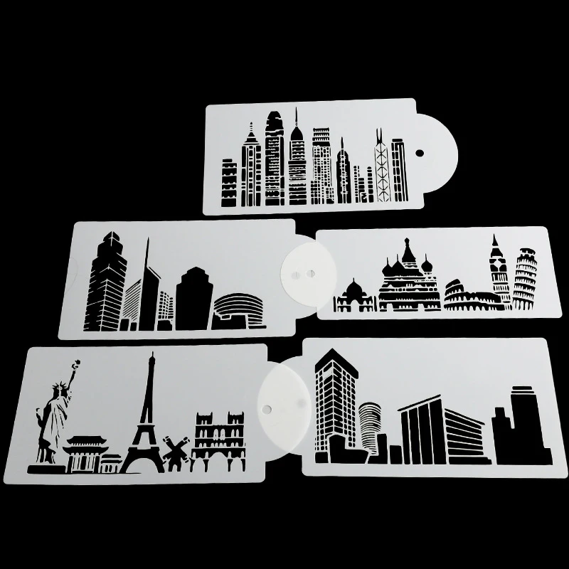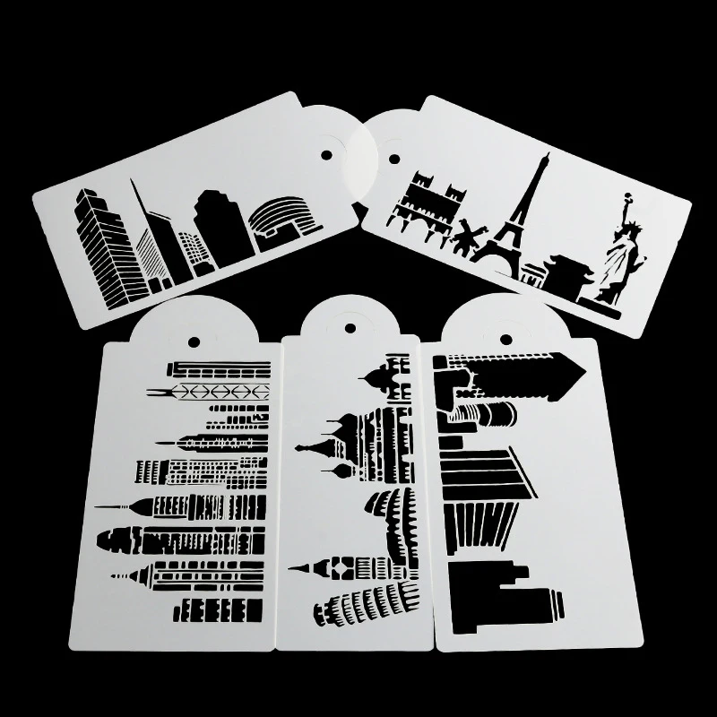 5 шт.компл. пластиковые Всемирно Известные здания, трафарет для тор...