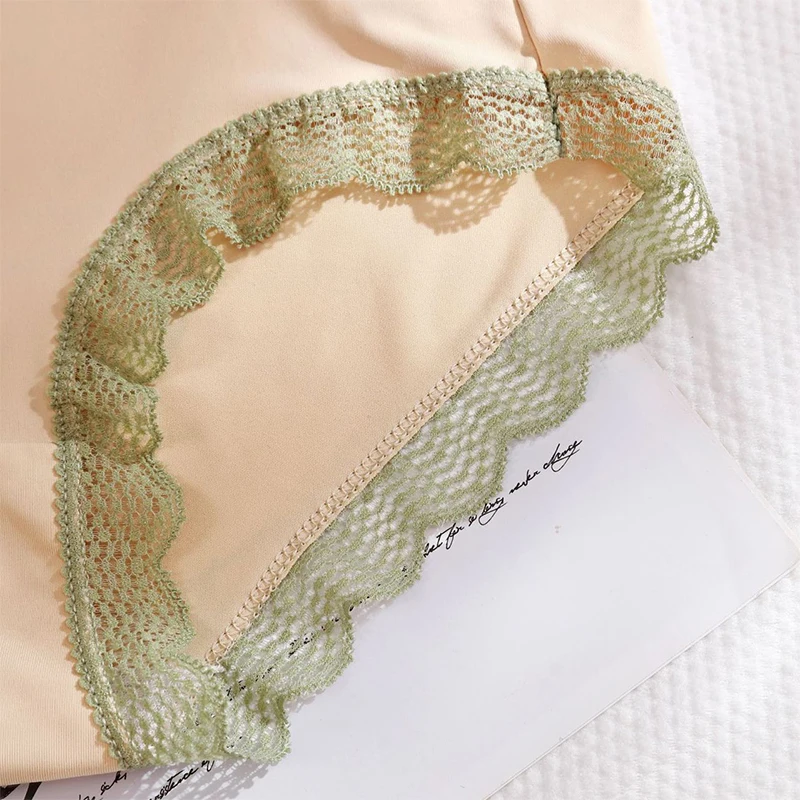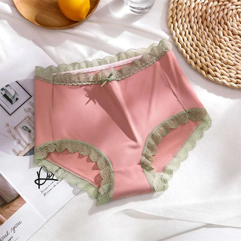 Женские трусики, кружевное нижнее белье, трусики со средней талией, сексуальное шелковое женское дышащее нижнее белье, однотонные трусики