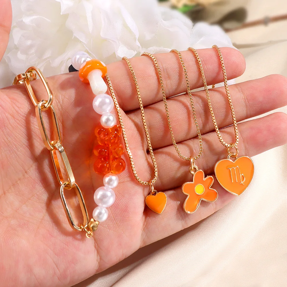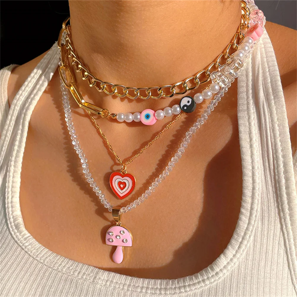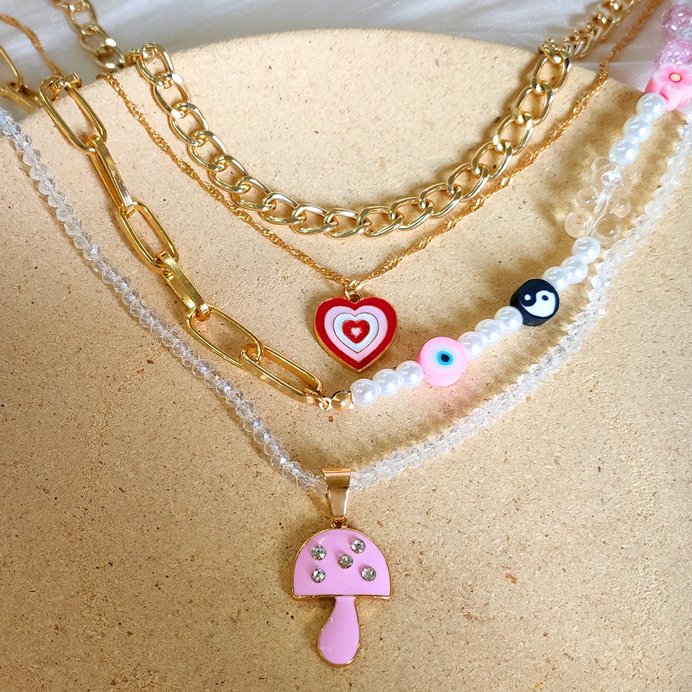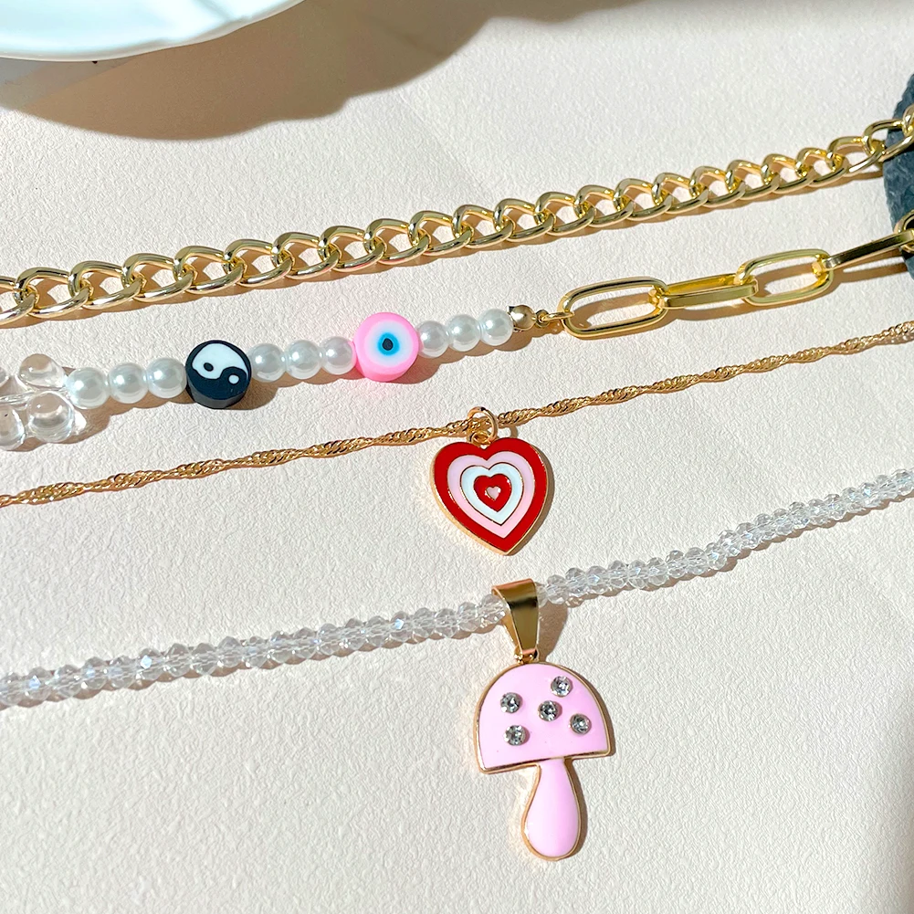 Ружовы мядзведзь кветка жамчужны карал з бсеру для жанчын Шматслойныя млыя вочы Залаты металчны ланцужок карал ключыцы колье Модныя ювелрныя вырабы