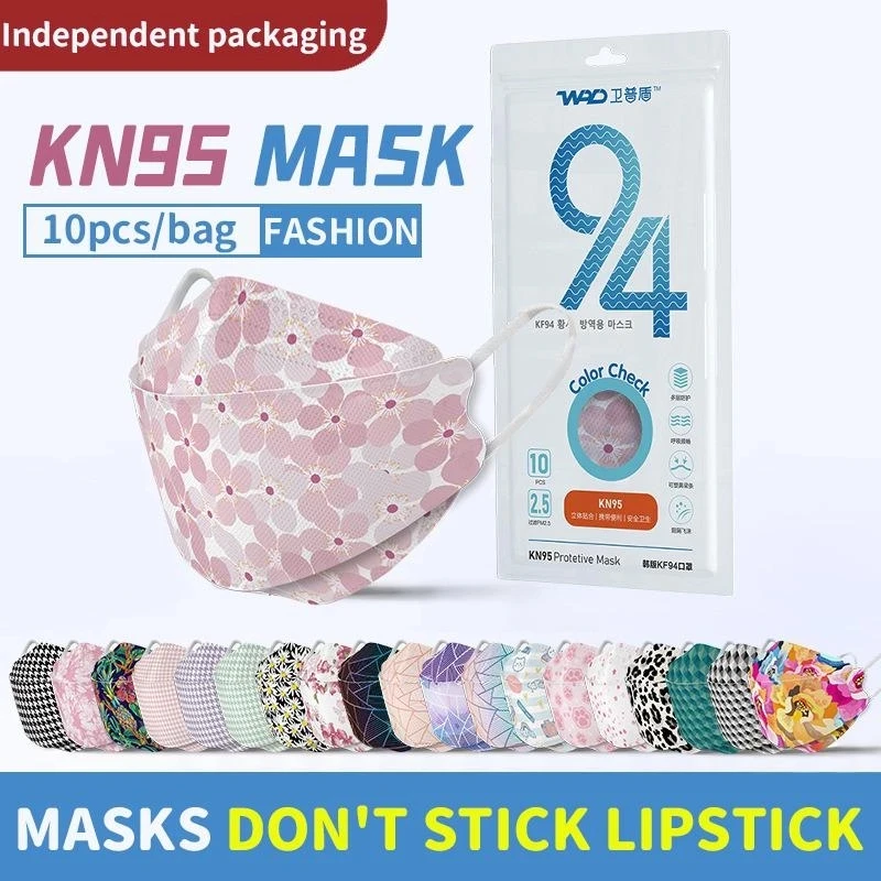 10 _ KN95 маска, Корейская маска для лица с принтом, четырехслойная многослойная Женская тканевая респираторная Защитная антипригарная маска для губ