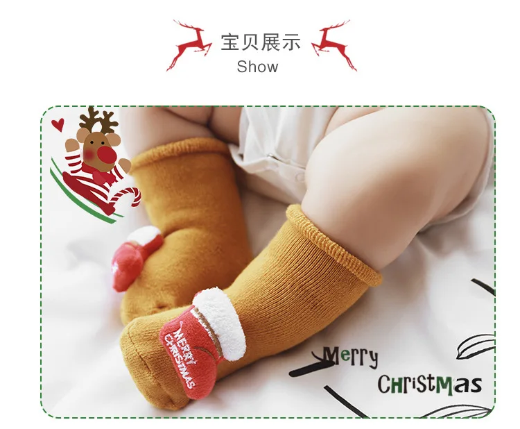 20 осенне-зимние новые рождественские детские чулки, хлопковые махровые, носки для пола, Детские Силиконовые Нескользящие Детские носки