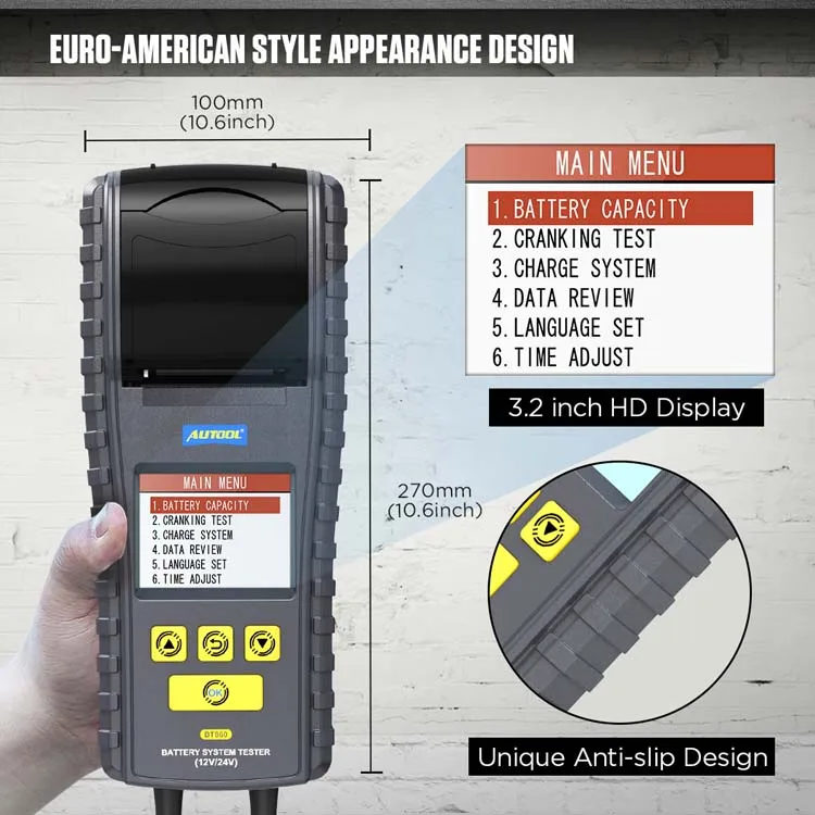 Новинка, автомобильный стартер AUTOOL Digital BT860, инжектор для автомобиля, тест напряжения зарядки, тестер системы аккумуляторной батареи 1224 в с принтером