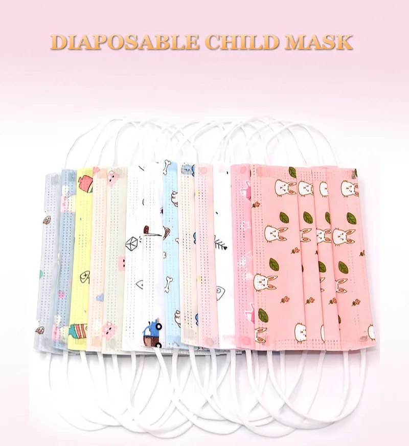 Маска для лица противовирусная одноразовая трехслойная с мультяшным принтом, 1050 шт.
