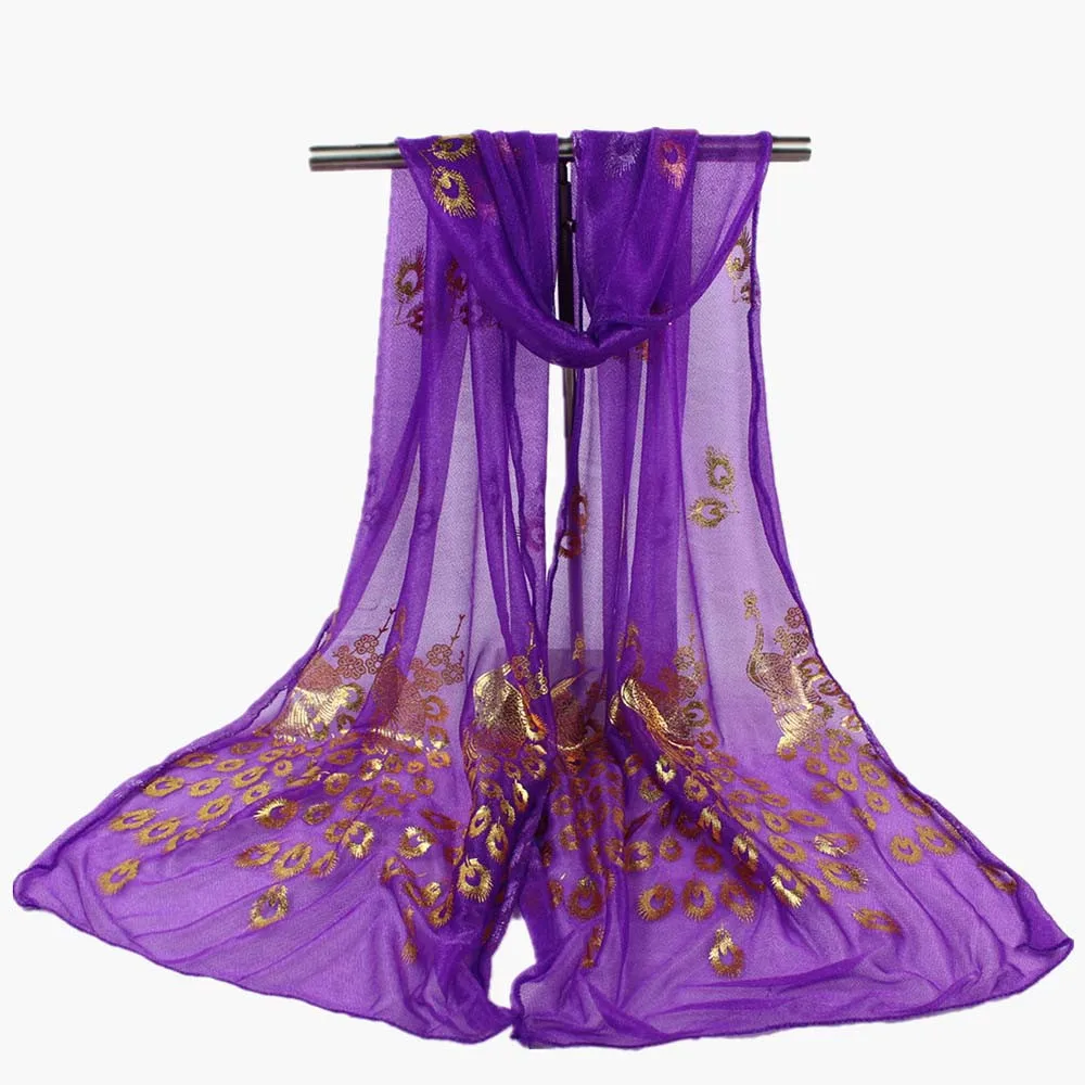 Женский шарф с павлиньими цветами, Длинный мягкий платок, шаль, многоцветный легкий хиджаб, праздничная тонкая бандана, фуляр
