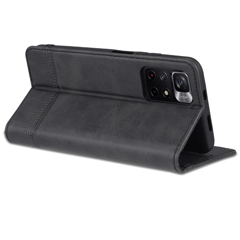 Магнитный чехол с отделением для карт для Xiaomi Poco M4 Pro 5G защитный кожаный чехол-книжка