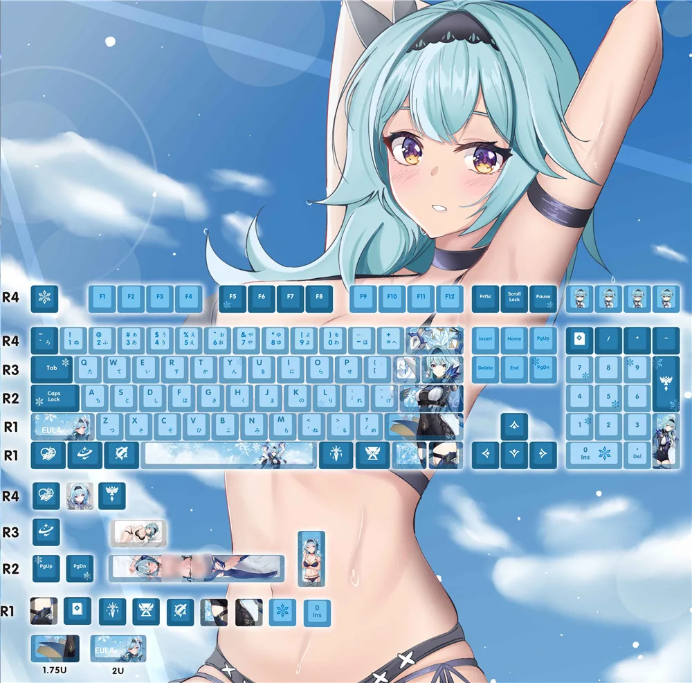 Аксессуары для клавиатуры Genshin Impact Eula, крутой мужской аксессуар для клавиатуры, подарки для косплея, клавиши PBT, механическая клавиатура, крышка для клавиш аниме s