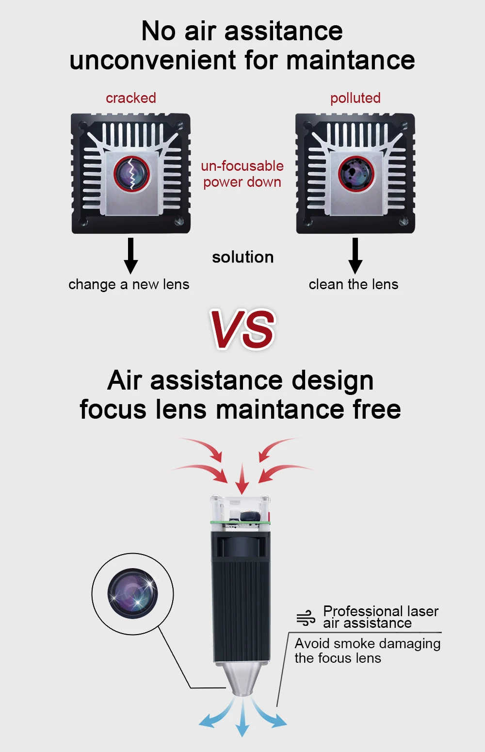 Лазерная головка с фиксированным фокусом, подходит для трехосевой гравировальной машины, легко устанавливается.